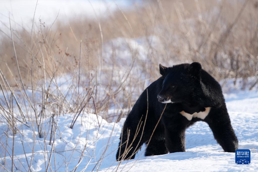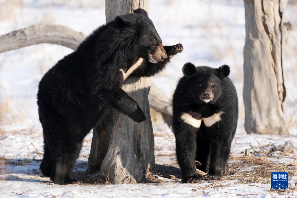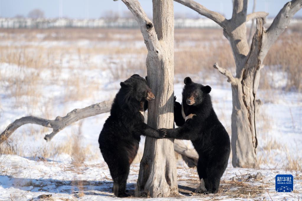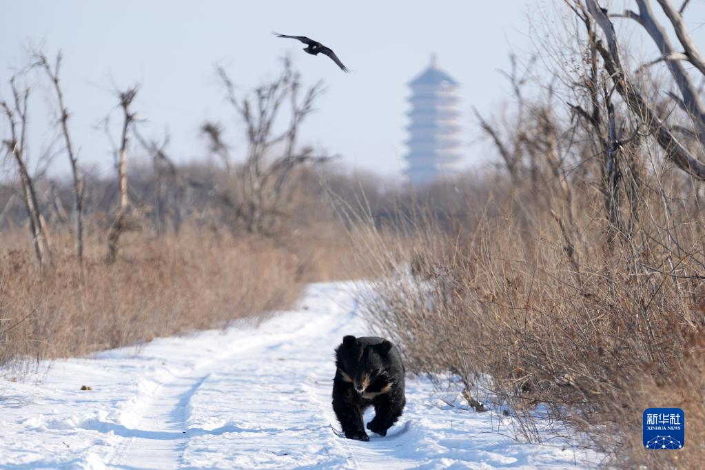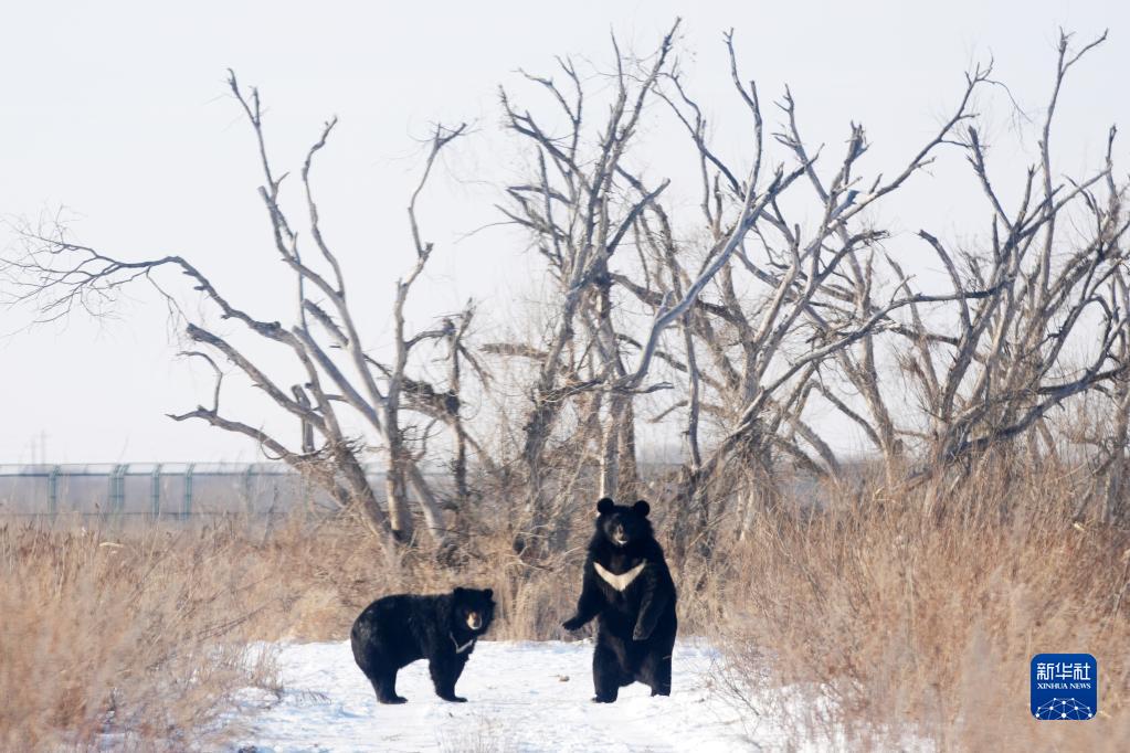 1月10日,黑熊在“探秘野熊園”內(nèi)活動。