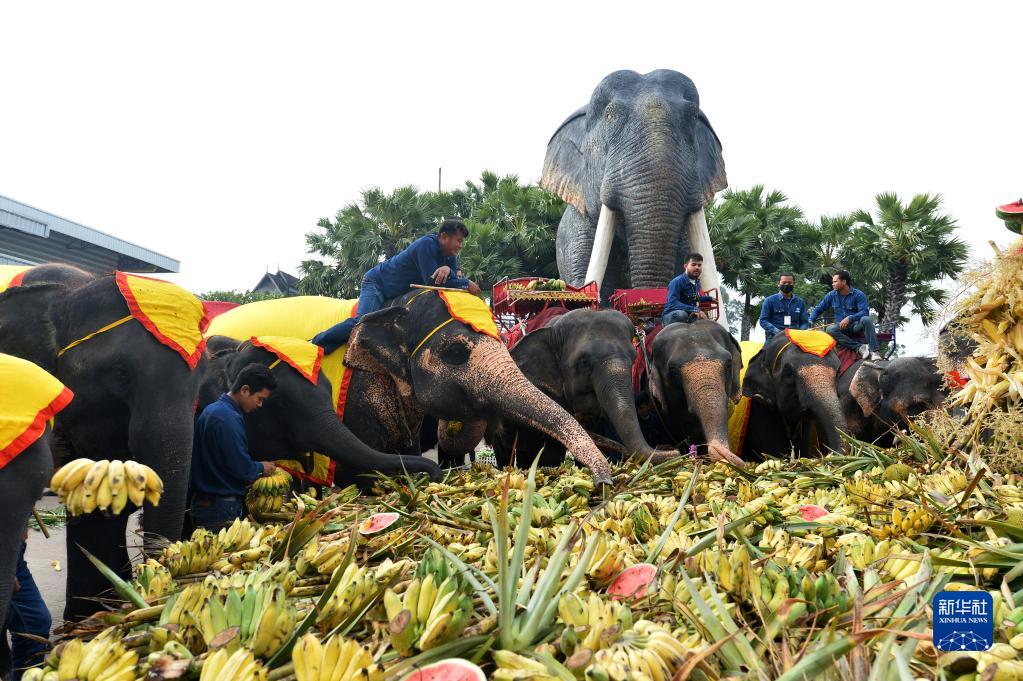 當(dāng)日是泰國一年一度的大象日,泰國芭堤雅東芭樂園在這一天為大象奉上了豐盛的水果自助餐。