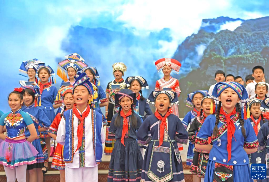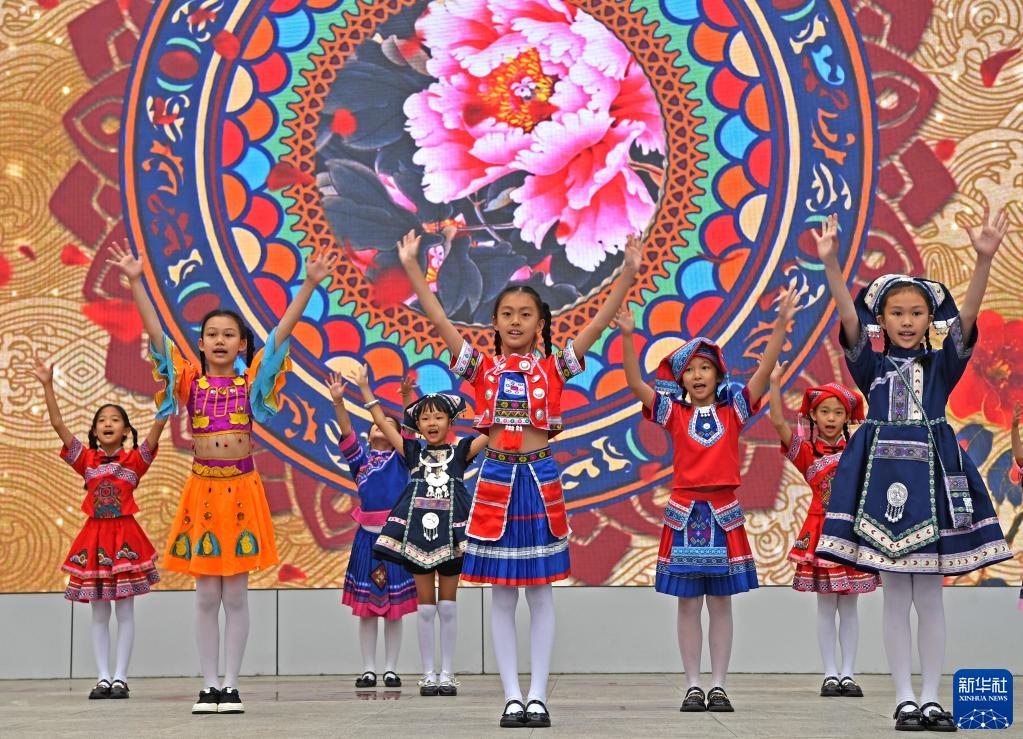 4月17日,孩子們在廣西南寧市濱湖路小學表演民族歌舞。