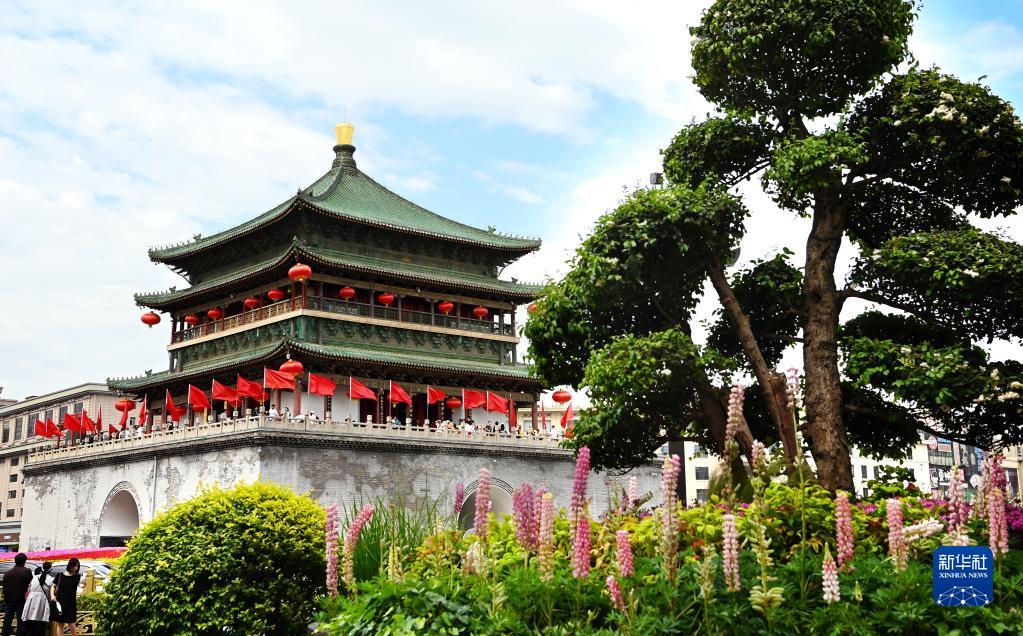 西安鐘樓(5月1日攝,無(wú)人機(jī)照片)。