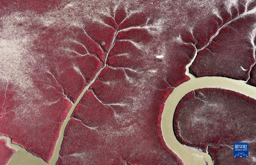 盤(pán)錦紅海灘國(guó)家風(fēng)景廊道景區(qū)內(nèi)的紅海灘(9月12日攝,無(wú)人機(jī)照片)。