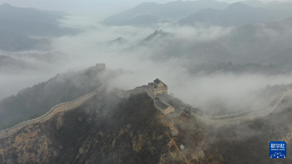 這是11月14日清晨在河北省承德市灤平縣拍攝的金山嶺長(zhǎng)城云霧景觀(guān)(無(wú)人機(jī)照片)。