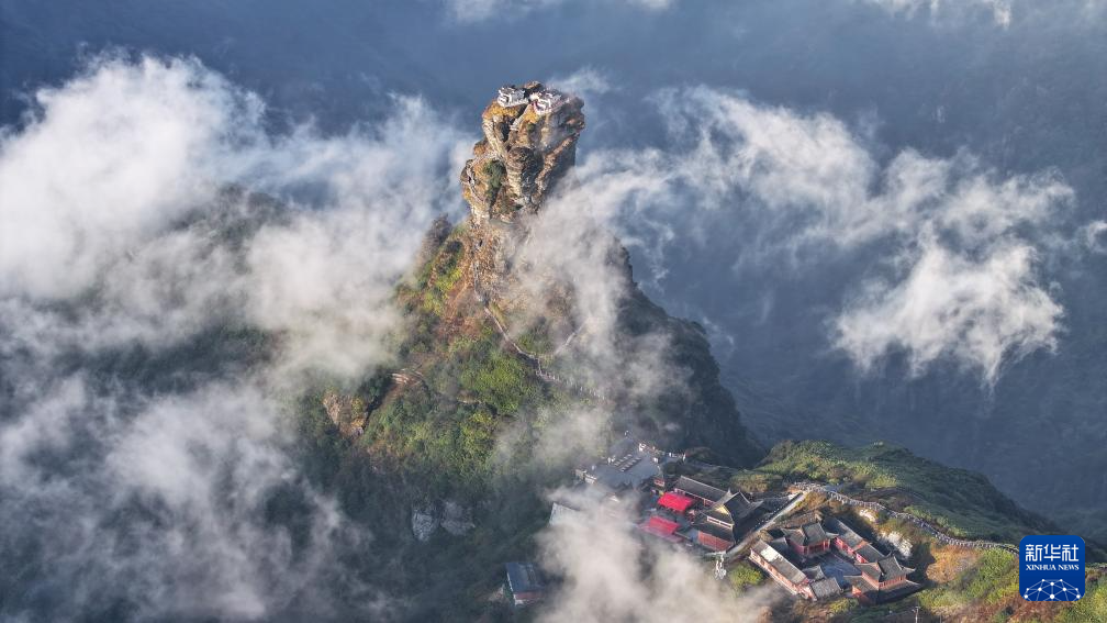 11月13日,在世界自然遺產(chǎn)地貴州梵凈山景區(qū)拍攝的云霧景觀(guān)(無(wú)人機(jī)照片)。
