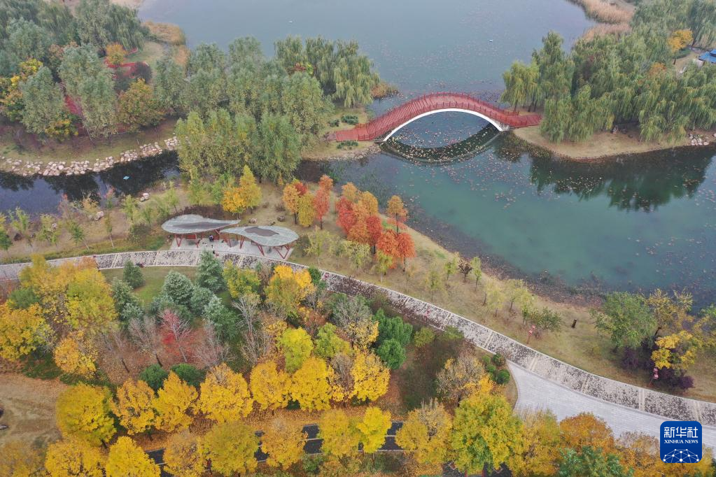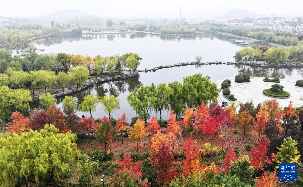 11月14日在河南省焦作市溫縣子夏公園拍攝的景色(無(wú)人機(jī)照片)。