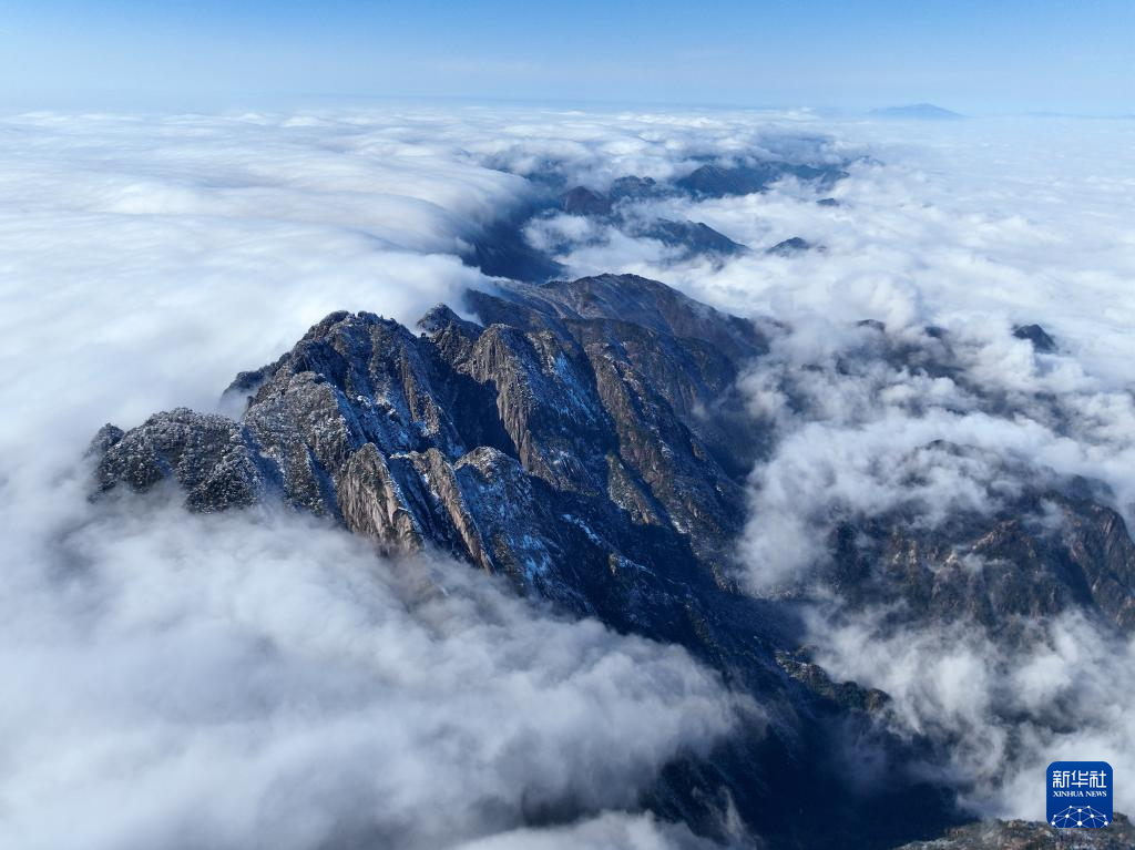 2月18日拍攝的安徽黃山風(fēng)景區(qū)景色(無人機(jī)照片)。