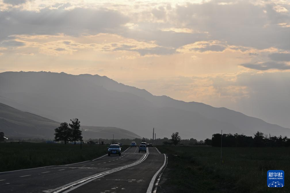 8月3日,車輛行駛在那拉提草原的道路上。
