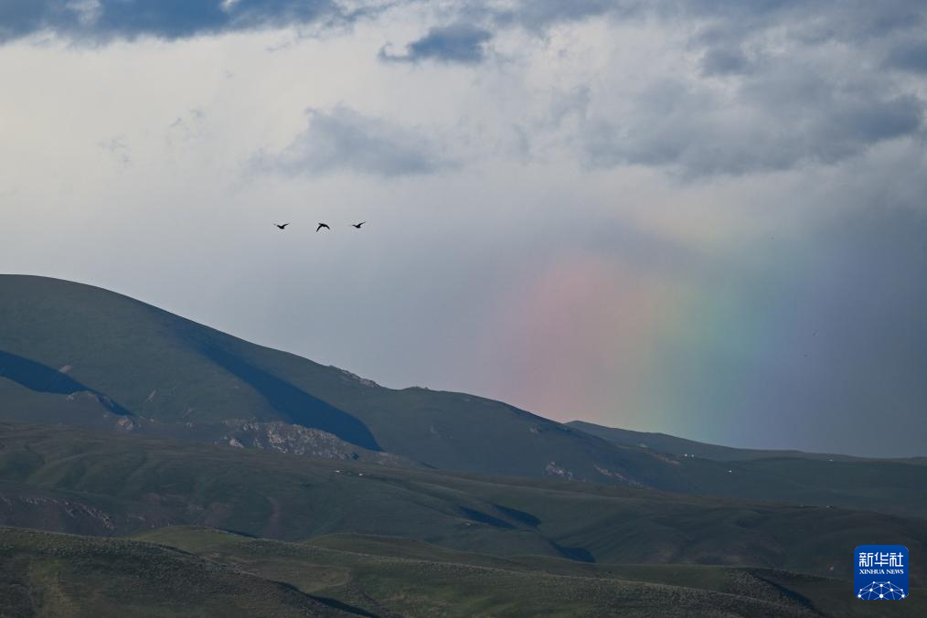 8月3日,一道彩虹出現(xiàn)在那拉提草原的上空。