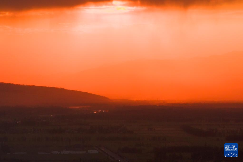 這是8月3日在那拉提草原拍攝的晚霞(無(wú)人機(jī)照片)。