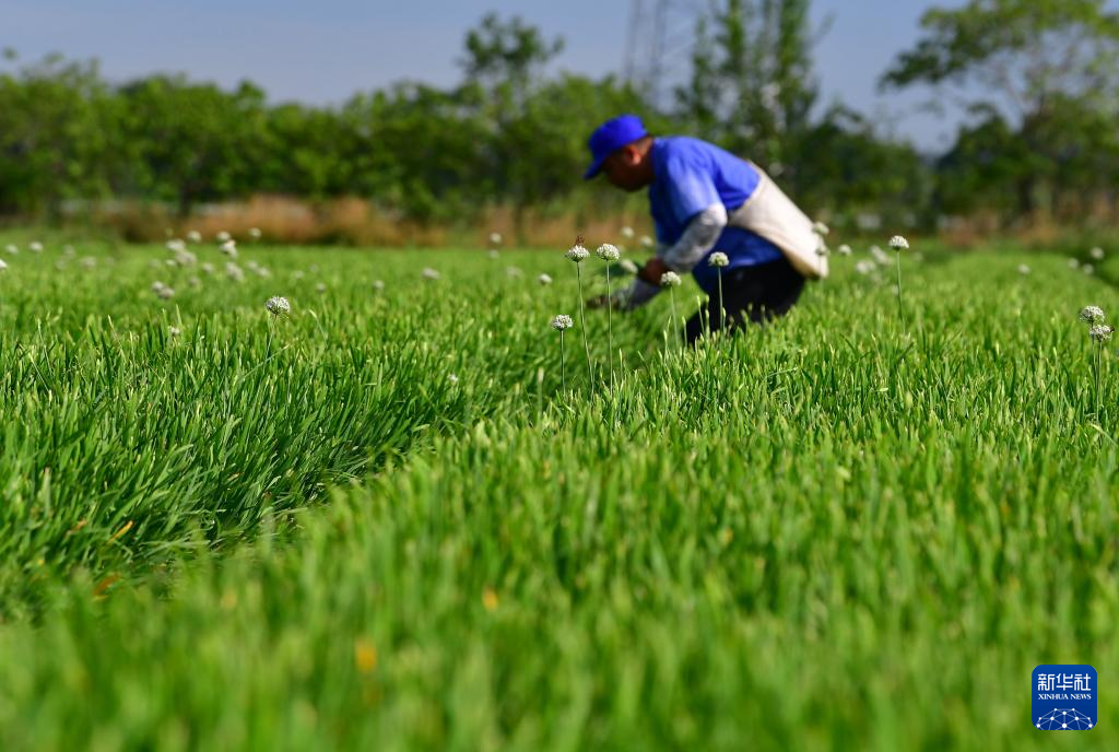 8月7日,采摘工在江蘇省無錫市惠山區(qū)玉祁街道一處蔬菜種植基地采摘韭菜花。