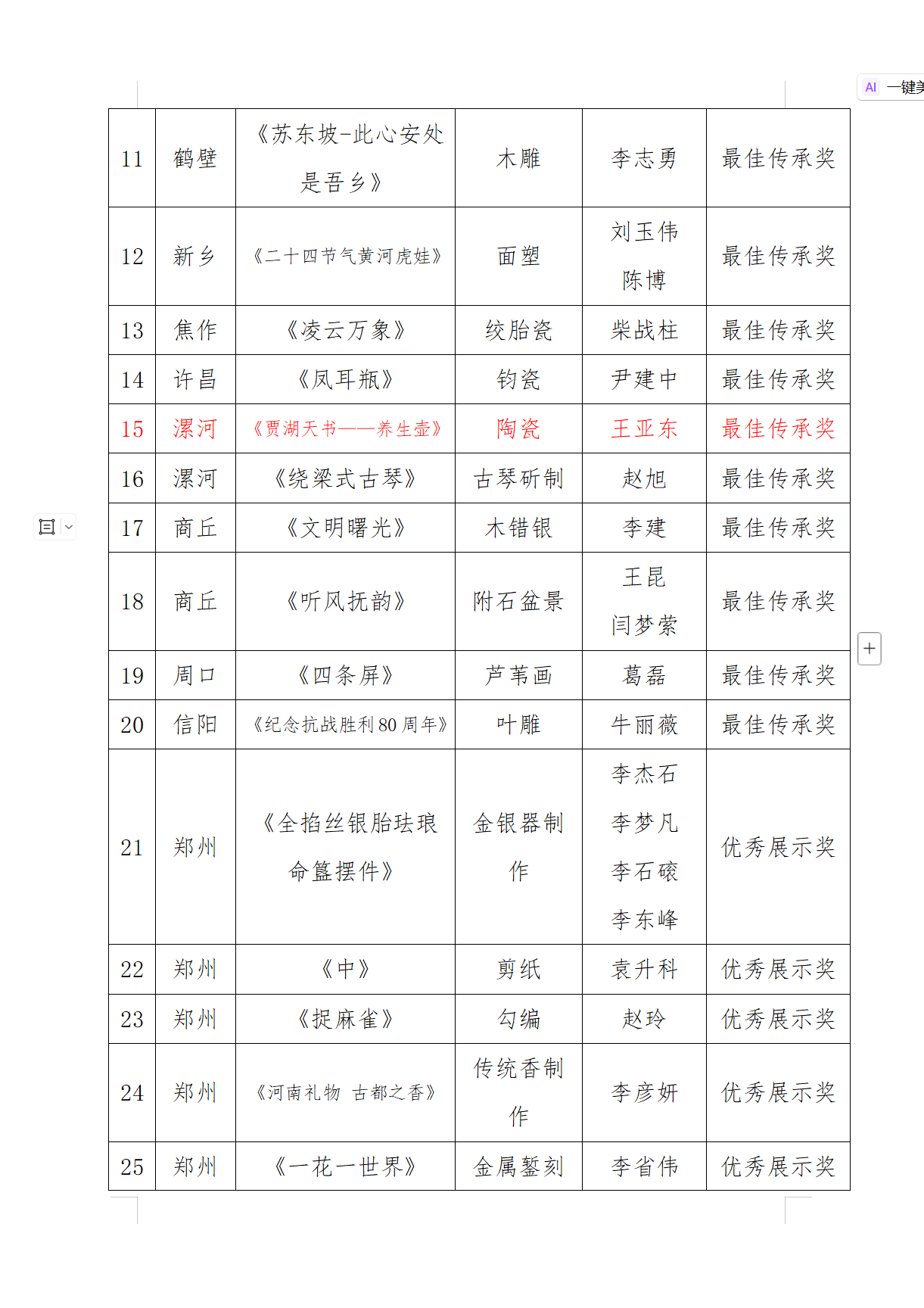 2025 年 12 月 10 日,河南省文化和旅游廳公示 “古藝心聲 匠心中原” 第六屆河南民間藝術展評審結果,漯河市舞陽縣文化館選送的《賈湖天書養(yǎng)生壺》榮獲此次展覽最高獎 ——最佳傳承獎。