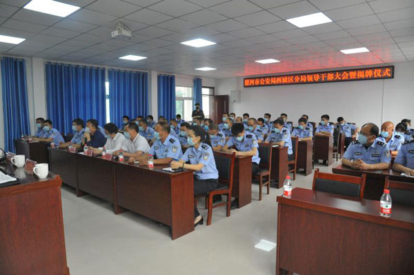 6月16日上午,西城區(qū)公安分局召開領(lǐng)導(dǎo)干部會(huì)議暨市公安西城分局成立揭牌儀式。區(qū)黨工委書記周劍,市公安局黨委委員、副局長(zhǎng)于珂,市公安局國(guó)內(nèi)安全保衛(wèi)和反恐怖支隊(duì)政委楊桂英,市公安局政治部組織教育科科長(zhǎng)王少君出席會(huì)議,區(qū)社會(huì)事業(yè)局、陰陽趙鎮(zhèn)及市公安局西城分局主要負(fù)責(zé)同志,市公安局西城分局全體干警參加會(huì)議,區(qū)黨工委副書記牛建昌主持會(huì)議。