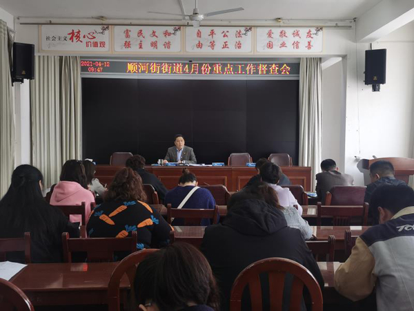 4月12日上午,順河街街道召開四月份重點工作督查會,辦事處中層以上干部及社區(qū)黨組織書記參加會議。會上,聽取了各科室、各社區(qū)負責人工作開展情況匯報,并對環(huán)保攻堅、黨史學習教育、招商引資、項目建設(shè)及疫苗接種等重點工作進行了再梳理、再安排、再部署。會議要求:1、堅守工作崗位、盡職盡責盡心;2、聚焦重點工作、統(tǒng)籌協(xié)調(diào)推進;3、加強組織領(lǐng)導,做好表率作用,確保各項工作任務保質(zhì)保量按時完成。
