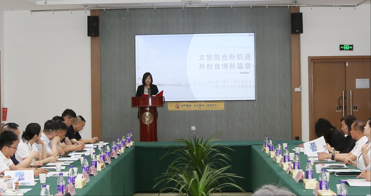 齊琳同志圍繞源匯區(qū)文旅產(chǎn)業(yè)發(fā)展現(xiàn)狀及優(yōu)勢(shì)作了專題宣傳推介,簡要介紹近年來源匯區(qū)堅(jiān)持“文化點(diǎn)亮城市、產(chǎn)業(yè)彰顯特色、創(chuàng)新引領(lǐng)未來”發(fā)展理念,立足“文商旅創(chuàng)融合中心區(qū)”發(fā)展定位,高起點(diǎn)站位、高標(biāo)準(zhǔn)謀劃、高質(zhì)量推進(jìn),做好文旅文創(chuàng)融合文章,積極培育文旅文創(chuàng)消費(fèi)新業(yè)態(tài)新場景,全力推動(dòng)文旅產(chǎn)業(yè)鏈項(xiàng)目建設(shè),走出一條以文化人、以文興業(yè)的新路子。最后表示將以此次食博盛會(huì)為契機(jī),以文旅融合為抓手,以食品文化為貫穿,依托轄區(qū)河上街景區(qū)和漯灣古鎮(zhèn)超高人氣和特色資源優(yōu)勢(shì),持續(xù)豐富旅游產(chǎn)品和旅游供給,激發(fā)消費(fèi)潛力,提升文化能級(jí),擦亮文商旅創(chuàng)融合新名片,傾力將源匯區(qū)打造成“在者舒心、來者傾心、聞?wù)邉?dòng)心”的全國知名文化旅游目的地。